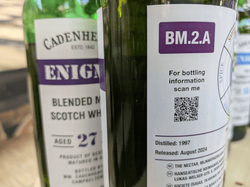 Enigma décline ainsi des codes, un peu à la manière de la SMWS, Cadenhead’s actant la difficulté à nommer les choses pour ajouter aux malheurs de l’amateur. Approchez, je vous lâche tout : le tout nouveau BM.2.A 27 ans désigne un blended malt, soit un Glenfiddich tea spooné au Balvenie. “Mais Cadenhead’s a par exemple le droit d’embouteiller deux fois par an un single cask de Glenfarclas avec le nom de la distillerie”, insiste Jenna McIntosh. Une quantité insignifiante, et par conséquent réservée au Royaume uni.
